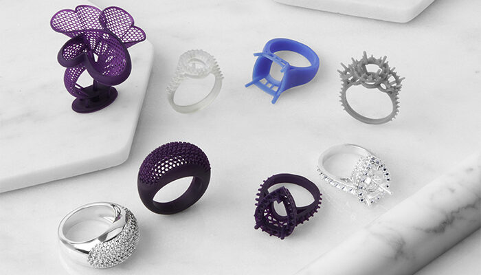 Modelli stampati in resina e gioielli finiti