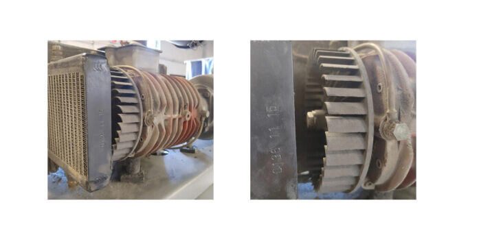 Un primo piano (a destra) e un’immagine ingrandita (a sinistra) del girante stampato in 3D, inserito perfettamente nella pompa sottovuoto della termoformatrice industriale.