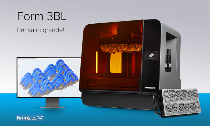 La Form 3BL è l’unica stampante 3D di grande formato ottimizzata per materiali biocompatibili ed è stata convalidata da un team di esperti del settore odontoiatrico per rispondere ai requisiti di accuratezza richiesti dalla produzione di allineatori dentali, con qualità delle parti e precisione uniformi su tutto il piano di stampa.