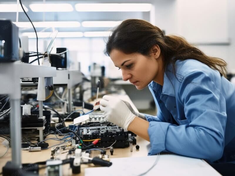 L’assemblaggio di parti elettroniche e meccaniche, in fase di test, avviene appena finito il pezzo.