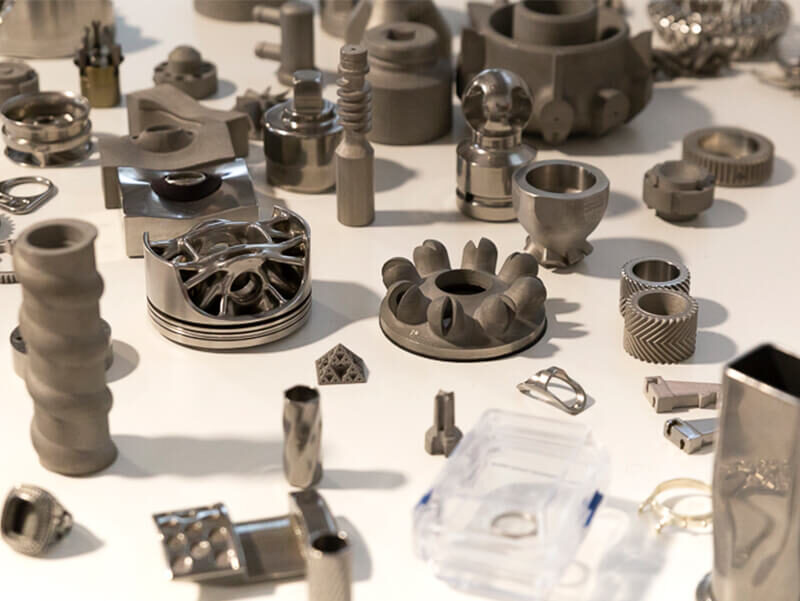 Qui puoi vedere alcuni esempi di parti in metallo stampate in 3D con Desktop Metal Studio System 2
